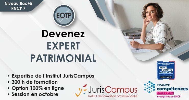 Titre de niveau 7 reconnu par l’État (Bac+5), le titre d’ Expert en Optimisation et Transmission du Patrimoine de l’institut JurisCampus vous apporte une expertise de la gestion stratégique de l’entreprise.