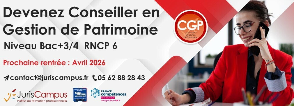 Le titre de Conseiller en Gestion de Patrimoine de l’institut JurisCampus permet d’obtenir un Niveau 6 de formation (Bac + 3/4), reconnu par l’État.